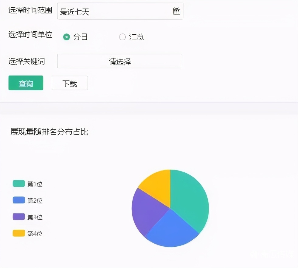 在后台的排名展现报告,能大致判断出你一周的整体排名展现情况,我们的排名展现一切要依据转化。